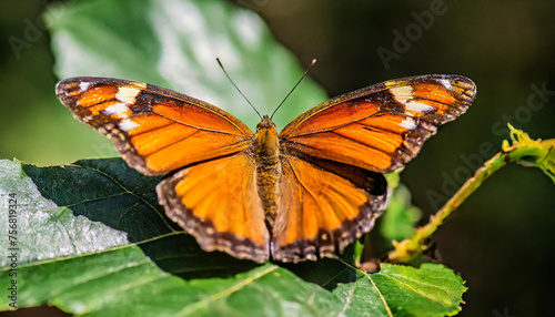 Fototapeta premium A stunning orange butterfly with intricate wing patterns on a dark backdrop