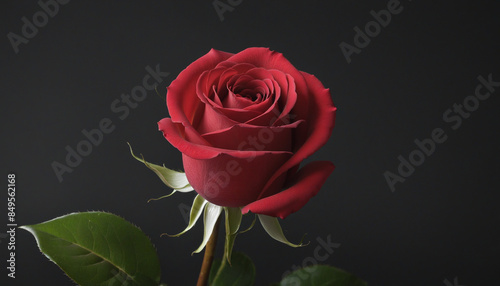 Naklejka premium A Stunning Red Rose Blossom Amidst a Dark Canvas
