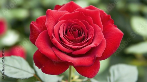 © yusufadi, Fototapeta premium A Stunning Red Rose in Bloom