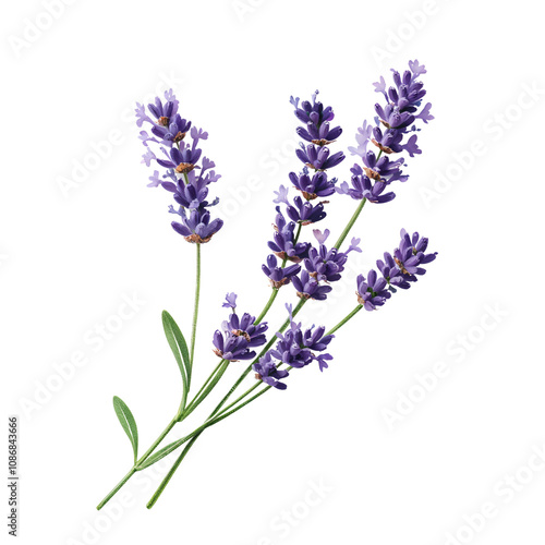 © akarawit, Naklejka premium A Stunning Representation of Lavender Blooms: A Delightful Cluster of Purple Flowers with Lush Green Leaves, Evoking Calmness and Serenity; Perfect for Aromatherapy and Decor.