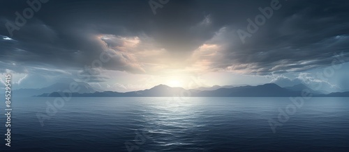 Fototapeta premium A stunning seascape with ominous dark clouds a radiant sun emerging from the...
