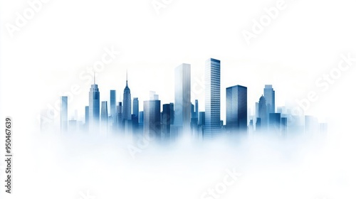 Naklejka premium A stunning silhouette of a modern city skyline enveloped in a soft blue fog,...