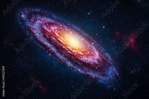 Naklejka premium A stunning spiral galaxy illuminated by a bright core, showcasing vibrant...
