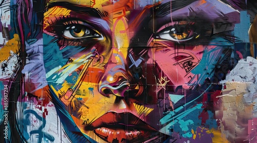 Naklejka premium A stunning street art mural with vibrant colors and intricate designs,...