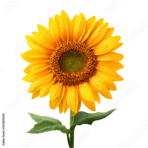 © Soneananh, Fototapeta premium A stunning sunflower with golden petals and a bright sunlit center stands tall against a plain white background radiating warmth and natural beauty