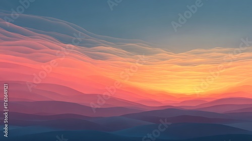 © Woranittha, Fototapeta premium A stunning sunrise showcases a gradient sky filled with captivating wave textures, creating an ethereal landscape of dawn.