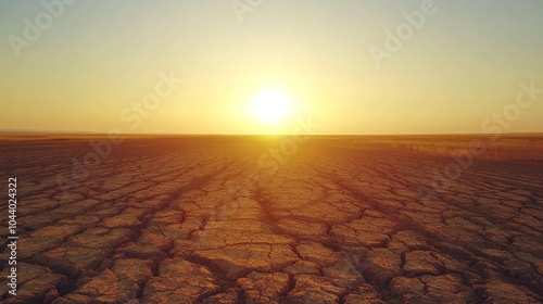 Fototapeta premium A stunning sunset casts golden light over a parched and barren landscape with cracked soil
