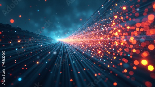 Obraz premium A stunning sunset lights up the horizon with warmth, piercing through vivid...