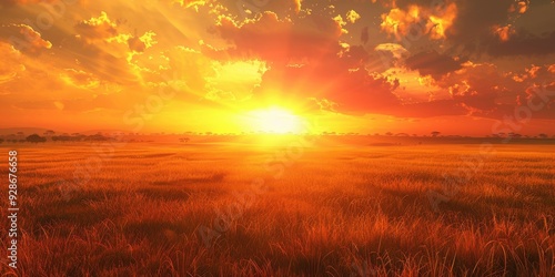 © Kamonwan, Fototapeta premium A stunning sunset over a golden field, showcasing vibrant colors and soothing hues, perfect for nature lovers and serenity seekers.