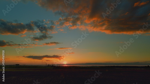Naklejka premium A Stunning Sunset Over Lush Fields Enhanced by Beautiful and Colorful Clouds...