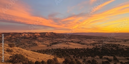 Fototapeta premium A stunning sunset over rolling hills and valleys, showcasing vibrant colors...