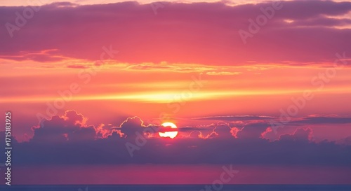 © Bimo, Naklejka premium A stunning sunset painting the sky with vibrant hues and celestial light
