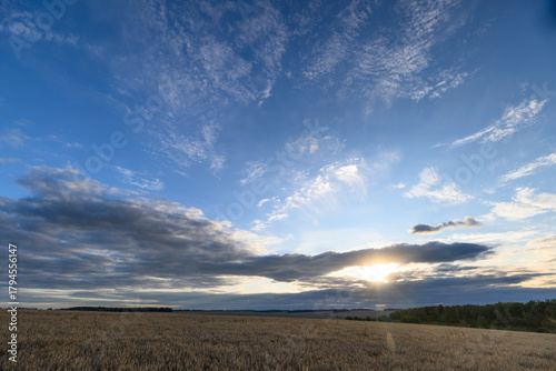 © beholdereye, Obraz premium A Stunning Sunset That Beautifully Paints the Sky Over a Serene, Expansive Field at Dusk