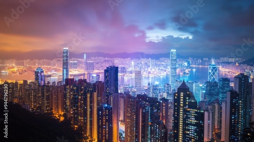 © KYR, Fototapeta premium A stunning time-lapse cityscape showing the transition from day to night, capturing urban growth and dynamism
