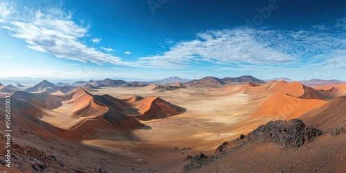 © Soklin, Fototapeta premium A stunning top-down shot of a vast desert with dunes in different hues stretching into the horizon