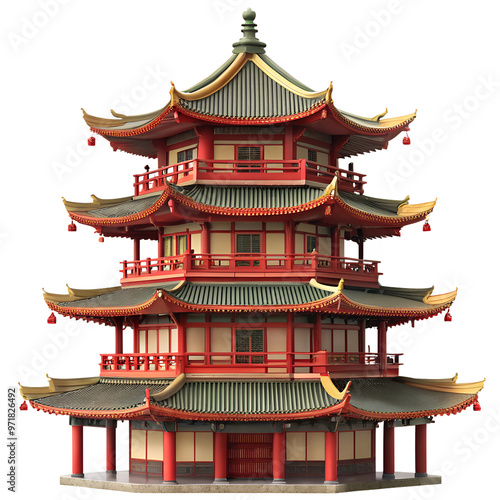 Naklejka premium A stunning traditional pagoda with ornate details and vibrant colors,...
