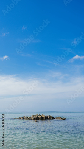 Fototapeta premium A stunning tropical island landscape with a pristine beach and turquoise water under a blue sky