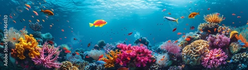 Fototapeta premium A stunning underwater scene featuring a vibrant coral reef teeming with...