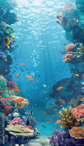 Fototapeta premium A stunning underwater scene featuring a vibrant coral reef teeming with...