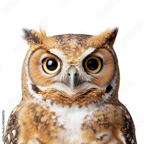 © Jaroon, Fototapeta premium A stunning, up-close shot of an owl, showcasing its striking gaze and detailed features
