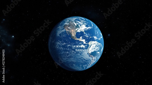 © SimpleDesignStudio, Obraz premium A Stunning View of Earth from Space: A Detailed Perspective of Our Planet Highlighting Its Oceans, Continents, and Cloud Patterns Against the Cosmic Background