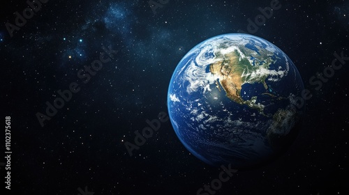 Fototapeta premium A stunning view of Earth from space, showcasing North America amidst a starry...