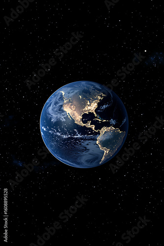 © Noufaldi, Fototapeta premium A stunning view of Earth from space, showcasing vibrant continents and swirling clouds