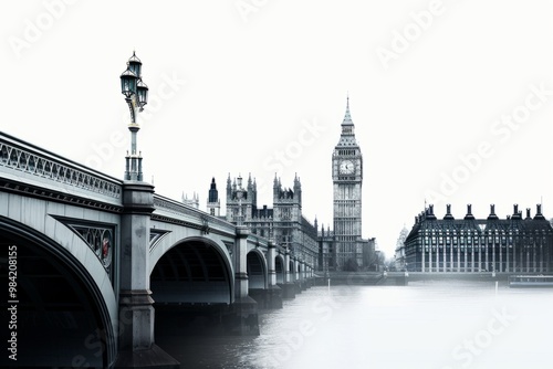 © Olsek, Naklejka premium A stunning view of London with the iconic Big Ben and Westminster Bridge. This serene image captures the essence of the city. Perfect for travel themes. Generative AI
