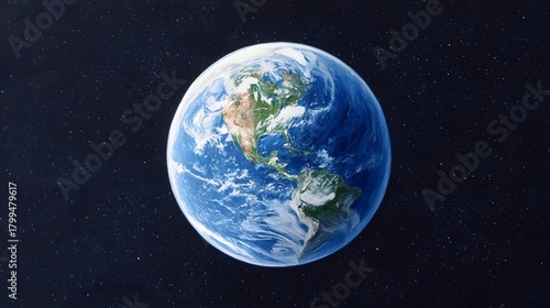 © pkproject, Obraz premium A stunning view of planet Earth suspended in the vastness of space highlighting its diverse geography swirling cloud patterns and the infinite celestial expanse beyond