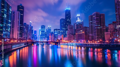 Fototapeta premium A stunning view of the Chicago skyline at night.