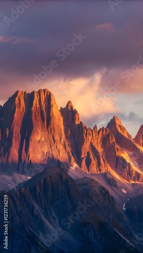 Fototapeta premium A stunning view of the Rocky Mountains at sunset, with jagged peaks glowing...