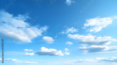 Fototapeta premium A Stunning View of White Fluffy Clouds Drifting Across a Clear Blue Sky,...