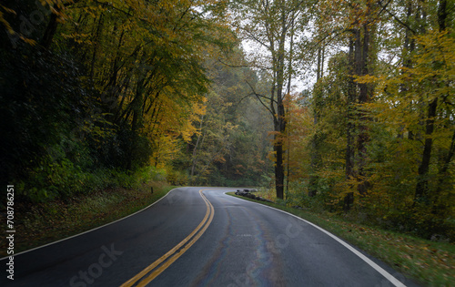 © Hemalatha, Fototapeta premium A Stunning view to the road of autumn