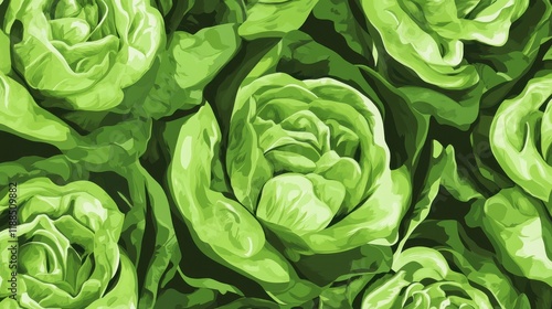 © Younes, Fototapeta premium A Stunning Visual Feast: Vibrant Green Lettuce Pattern Design for Home Decor