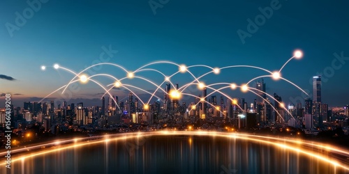 Obraz premium A Stunning Visual of a Futuristic Metropolis Showcasing Advanced Urban Technology and Connectivity