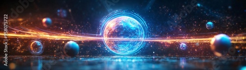 Obraz premium A stunning visual of planets and cosmic elements orbiting in a vibrant...
