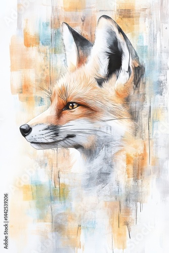 © J. Thamanoon, Obraz premium A Stunning Watercolor Portrait Showcasing the Vibrant Fur and Ears of a Fox in Its Natural Habitat