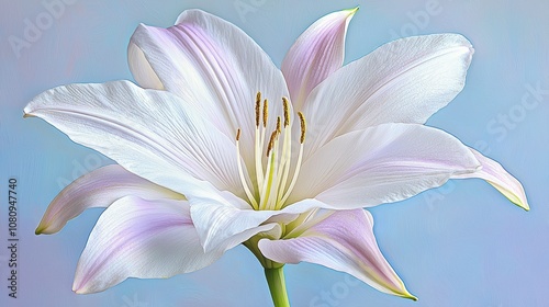 Naklejka premium A stunning white lily blossom displaying delicate petals.