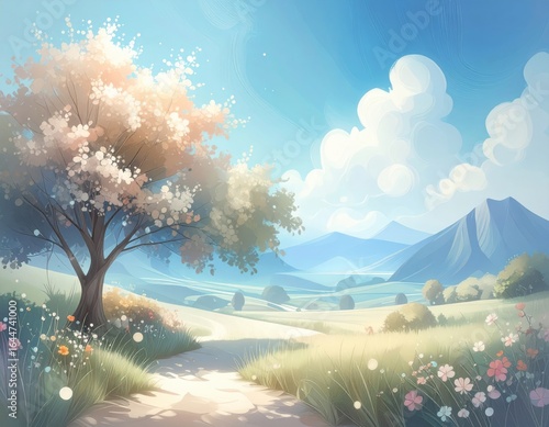 Fototapeta premium A stunning winter landscape with a snow-covered Christmas tree, bathed in a...
