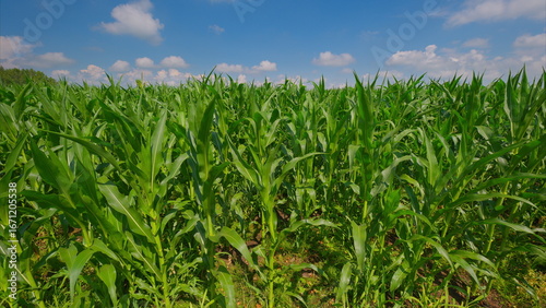 Obraz premium A Stunningly Lush Cornfield Set Beneath a Bright and Clear Blue Sky on a Gorgeous Day