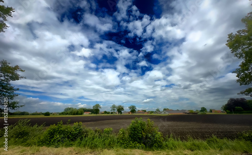 © Bjorn B, Obraz premium A stunningly picturesque view of a charming rural field beneath a captivating sky showcasing dynamic cloud patterns