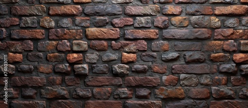 Obraz premium A sturdy brick wall constructed using small rocks as building material. The...