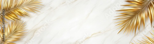 Fototapeta premium A stylish background featuring marble texture with golden palm leaves, perfect for elegant presentations and design projects.