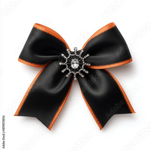 Fototapeta premium A stylish black and orange bow featuring a decorative spider brooch, perfect...