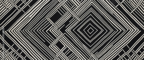 Fototapeta premium A stylish black and white rug featuring intricate geometric patterns, adding...