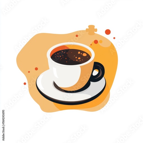 Obraz premium A stylish coffee cup filled with dark brew, set against an abstract orange...