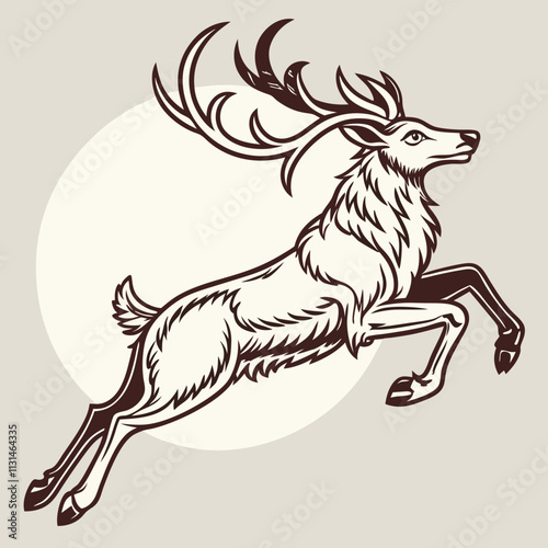 Fototapeta premium A stylish tattoo design featuring a reindeer in a dynamic jumping pose,...