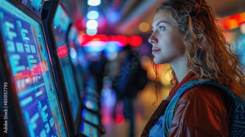 Obraz premium A stylish woman dancing joyfully in a vibrant New York City nightclub She's...