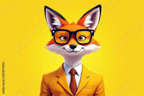 Obraz premium A stylized anthropomorphic fox with oversized glasses, and a bright yellow...