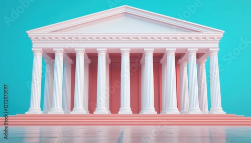 Obraz premium A stylized architectural structure with classical columns, featuring a pastel color scheme and a vibrant backdrop.